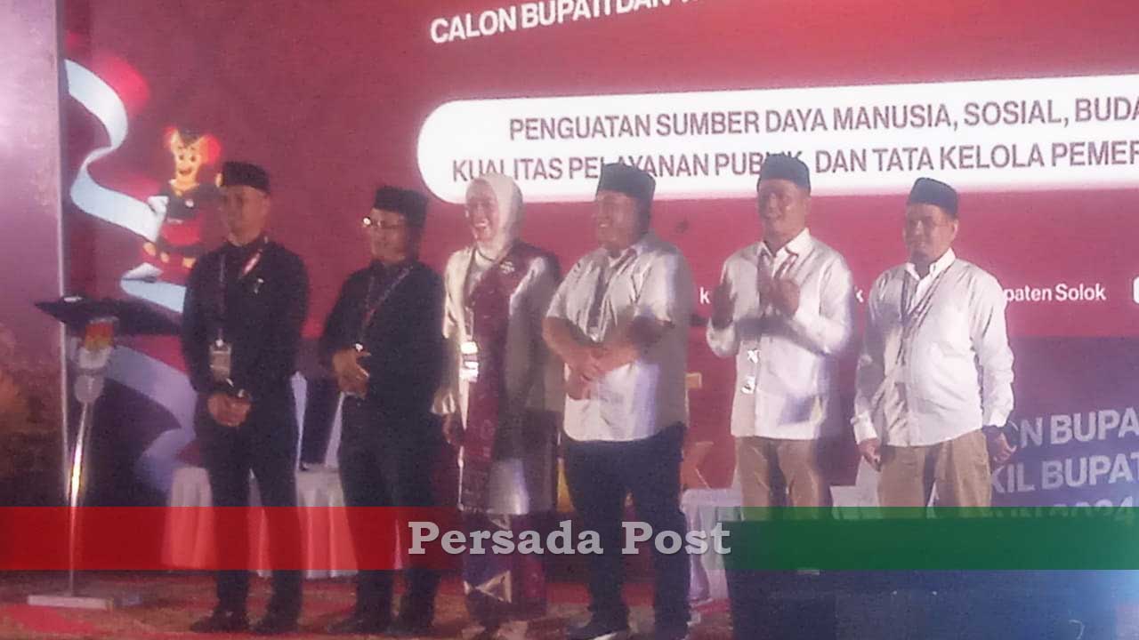 Solok – Persada Post | Komisi Pemilihan Umum (KPU) Kabupaten Solok, menggelar sesi debat yang kedua pasangan calon Bupati Solok periode 2025-2030, di Sport Hall GOR Batu Batupang, baru-baru ini.