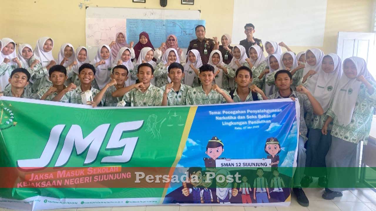 Lubuk Tarok – Persada Post | Program Jaksa Masuk Sekolah (JMS) dari Kejaksaan Negeri (Kejari) Sijunjung, kali ini melakukan kunjungan dan memberikan materi ke SMA Negeri 12 Sijunjung, Rabu (7/5/2025) pagi.