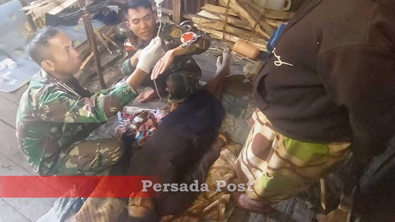 Pegunungan Bintang – Persada Post | Personil Satgas Yonif 143/TWEJ Pos Kiwirok dengan sigap melakukan pertolongan medis terhadap mama Alexa (46) yang mengalami pendarahan pasca melahirkan tiga bulan yang lalu di Kampung Oknanggul, Distrik Kiwirok, Kab. Pegunungan Bintang, Papua Pegunungan, Selasa (11/7/2023) kemarin.