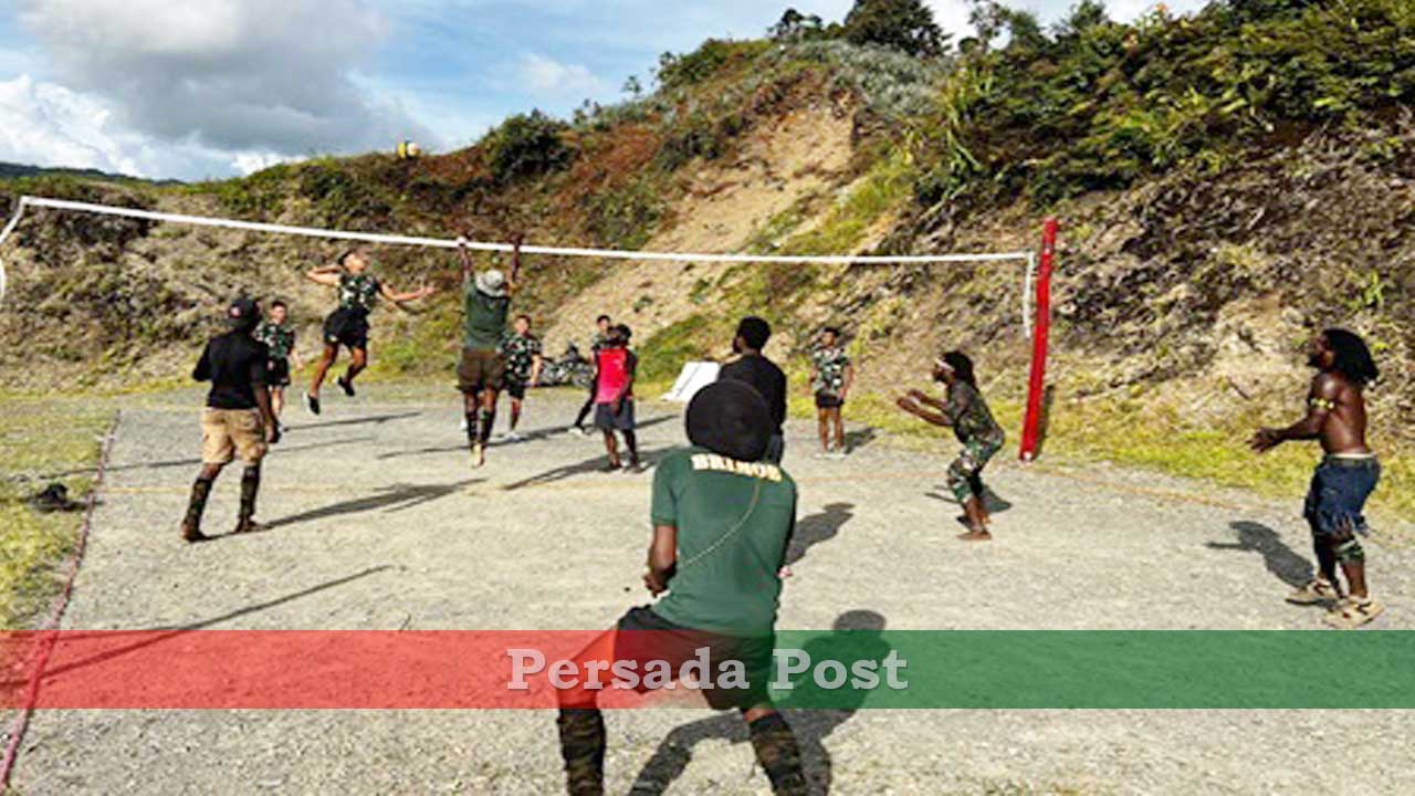 Puncak Jaya – Persada Post | Untuk menjalin kekompakan antara personel Satgas dan masyarakat kampung Pintu Angin, Satgas Yonif 715/Mtl Pos Pintu Angin, mengajak masyarakat olahraga bersama untuk tetap menjaga kebugaran jasmani seluruh personel saat melaksanakan tugas di Puncak Jaya, Sabtu (10/05/2025).