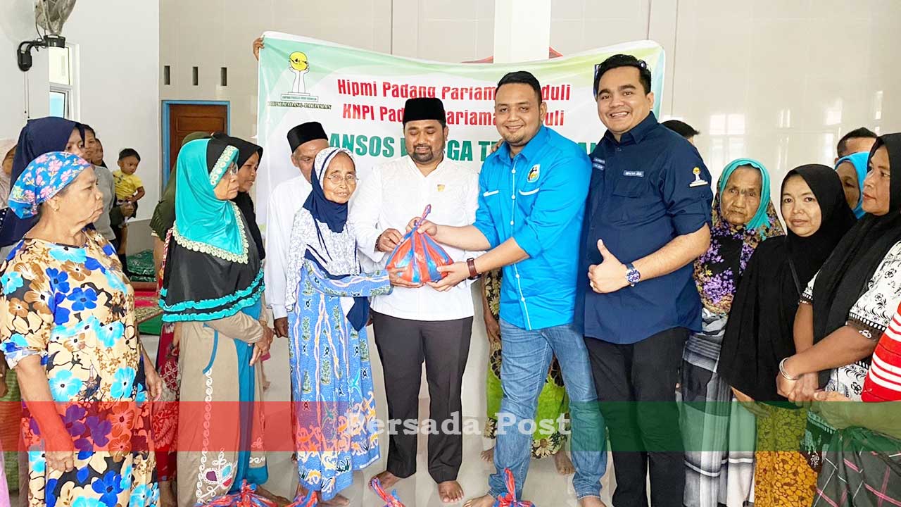 Bantuan itu diserahkan langsung oleh Syafrinaldi selaku tokoh masyarakat, yang juga anggota Dewan Perwakilan Daerah (DPRD) Kabupaten Padang Pariaman, Ari Irpendi selaku Ketua HIPMI dan Havis Al-Harif selaku Ketua KNPI Padang Pariaman.
