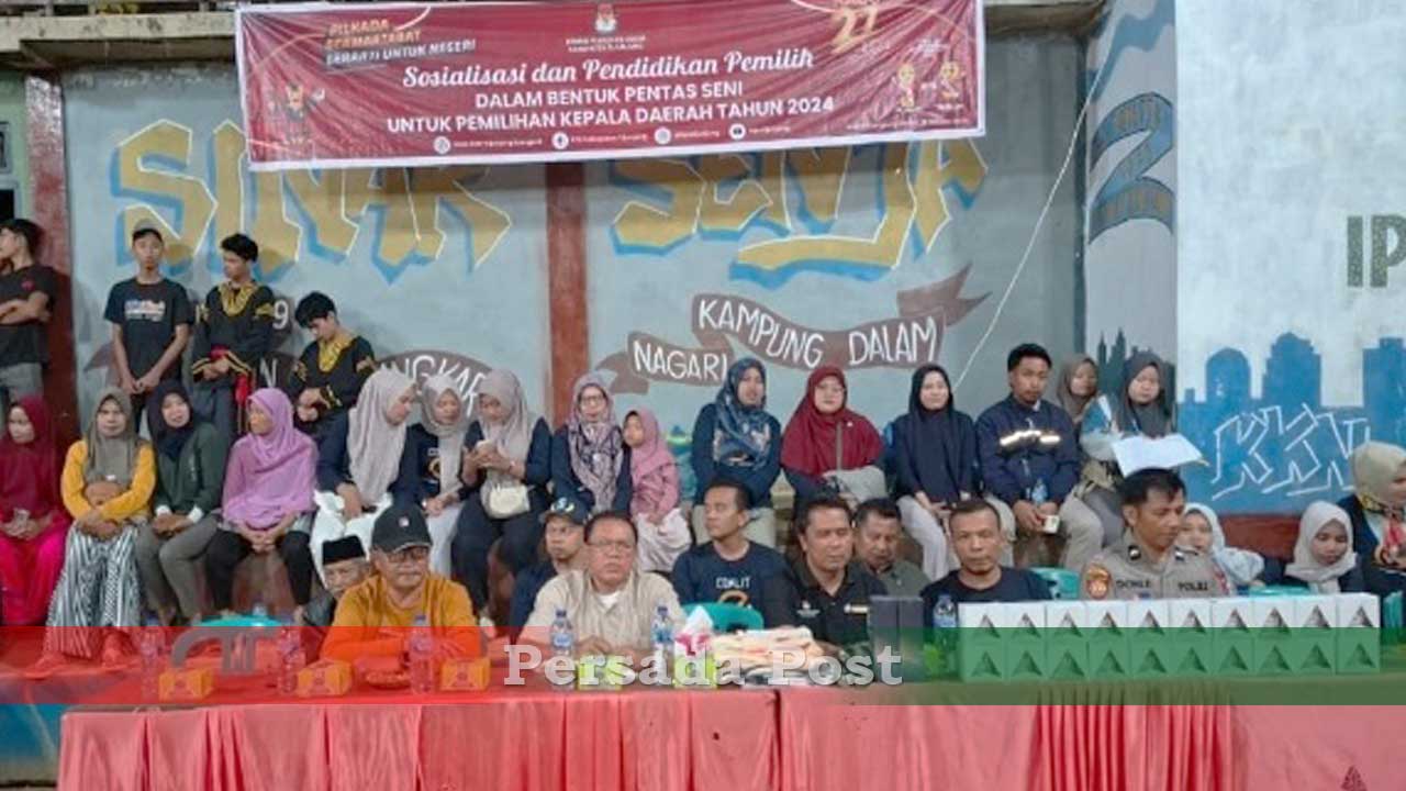 Sijunjung – Persada Post | Banyak cara yang dilakukan oleh Komisi Pemilihan Umum (KPU) Kabupaten Sijunjung, untuk mensosialisasikan dan memberikan pendidikan pemilih kepada masyarakat di daerah itu. Kali ini kegiatan sosialisasi dilakukan dalam bentuk pentas seni, dengan menghadirkan Seni Budaya Randai Group Randai Putiek Kajadi Buah dan Group Randai Sarai Sarumpun dari Nagari Kampung Dalam, Jumat (18/10/2024) kemarin, tepatnya di Lapangan Volley Ball Sinar Senja Jorong Palintangan Nagari Kampung Dalam, Kecamatan Lubuk Tarok, Kabupaten Sijunjung, Provinsi Sumatera Barat.