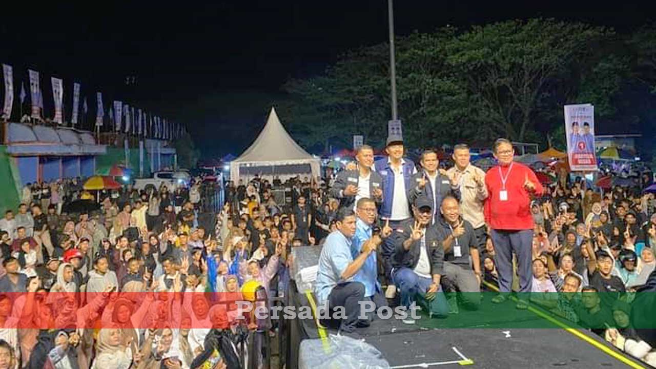 Solok – Persada Post | Ribuan masyarakat tumpah-ruah sambut kehadiran kandidat pasangan Gubernur dan Wakil Gubernur Sumatera Barat, Mahyeldi Ansharullah – Vasko Ruseimy di Kabupaten Solok. Meski hujan sejak sore, konser bertajuk: Gerak Cepat Untuk Sumbar tersebut, ternyata tidak menyurutkan semangat ribuan warga Kabupaten Solok menghadirinya, Selasa (05/11/2024) kemarin.